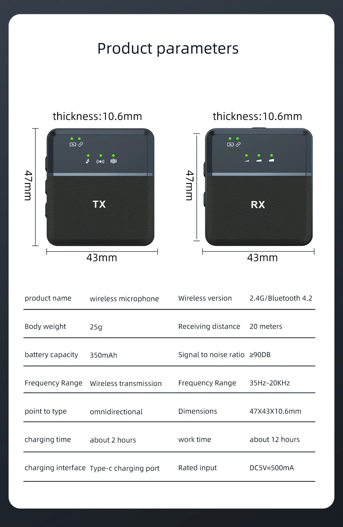 * This product is 4.7cm long, 4.3cm wide, and 1.06cm high. Large-capacity battery supports long battery life.