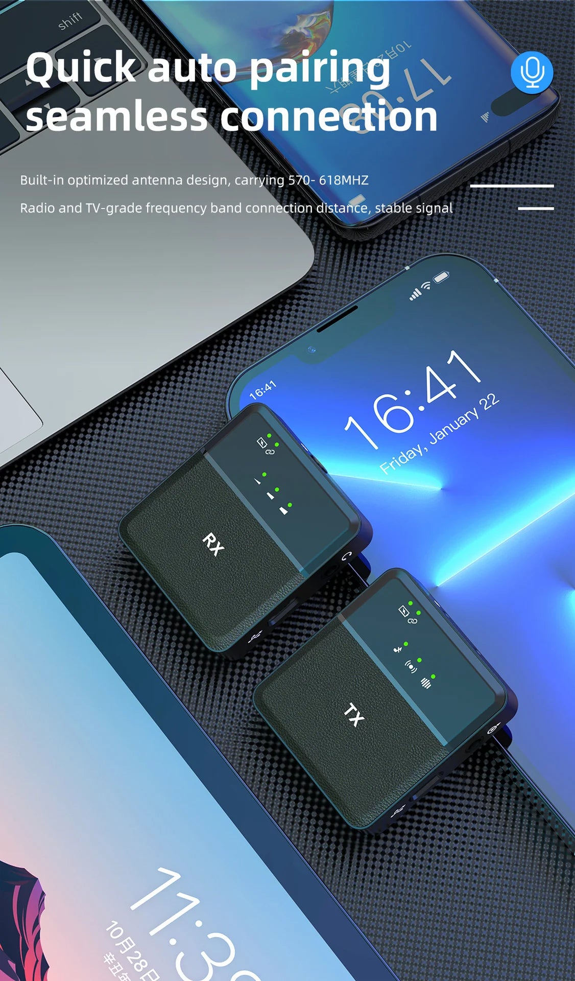 * This microphone adopts intelligent noise reduction and 360-degree omnidirectional pickup, which can bring you HiFi and clear recording experience.